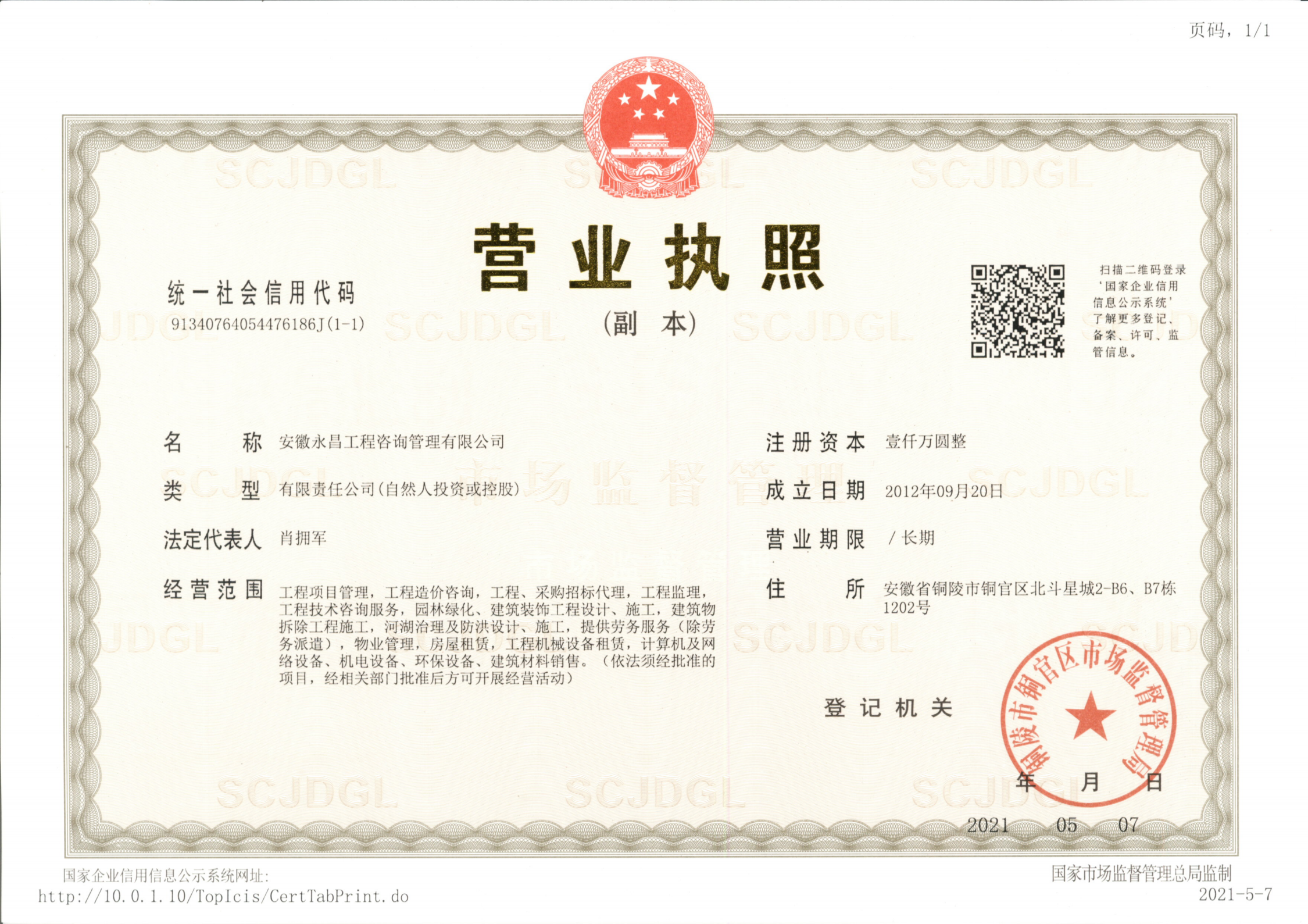 前身是經(jīng)安徽省財(cái)政廳財(cái)會(huì)協(xié)字(1999)1430號(hào)文件批準(zhǔn)的銅陵永昌會(huì)計(jì)師事務(wù)所,于2000年元月份合并成立,2012年9月更名為銅陵永昌工程咨詢(xún)管理有限公司,2019年10月更名為安徽永昌工程咨詢(xún)管理有限公司。是從事工程造價(jià)咨詢(xún)、招標(biāo)代理、工程監(jiān)理、工程項(xiàng)目管理及工程咨詢(xún)等多項(xiàng)業(yè)務(wù)的咨詢(xún)管理公司。其市場(chǎng)目標(biāo)就是以專(zhuān)業(yè)化的管理和咨詢(xún)服務(wù)幫助項(xiàng)目投資人實(shí)現(xiàn)其投資收益和社會(huì)效益的較大化。